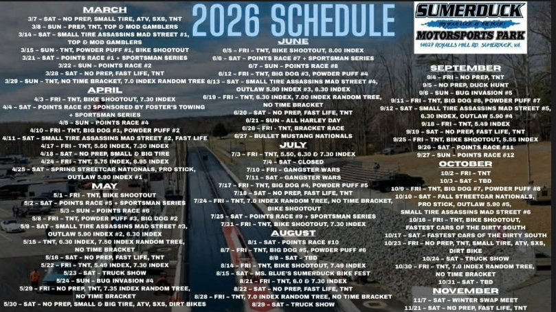 RACING SCHEDULE AT SUMERDUCK
